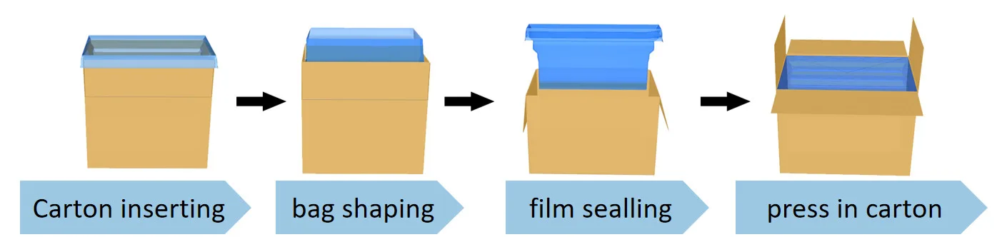 Humanized design: Automatically complete carton input, positioning, roll film output, box entry, film cutting, folding, and carton output. Automatic bagging is formed synchronously at one time without stopping;